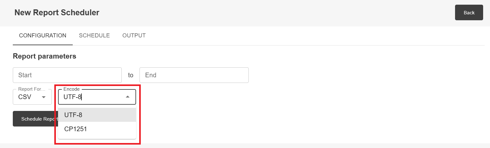 1. Set Configuration to define report parameters such as report time, report format, and encoding.