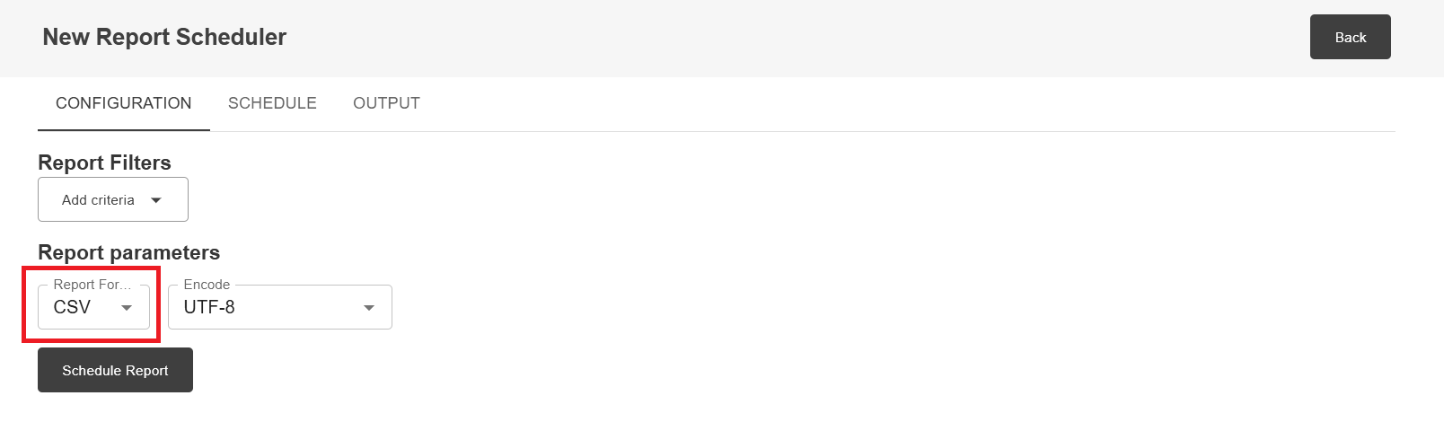 By clicking on Add Criteria the needed filter can be selected. Depending on the report the filters may change.