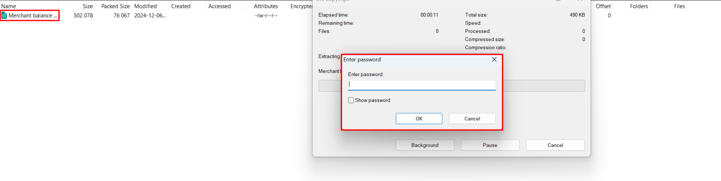 Zip - Sends the report in a ZIP file with the password specified in the Password field.