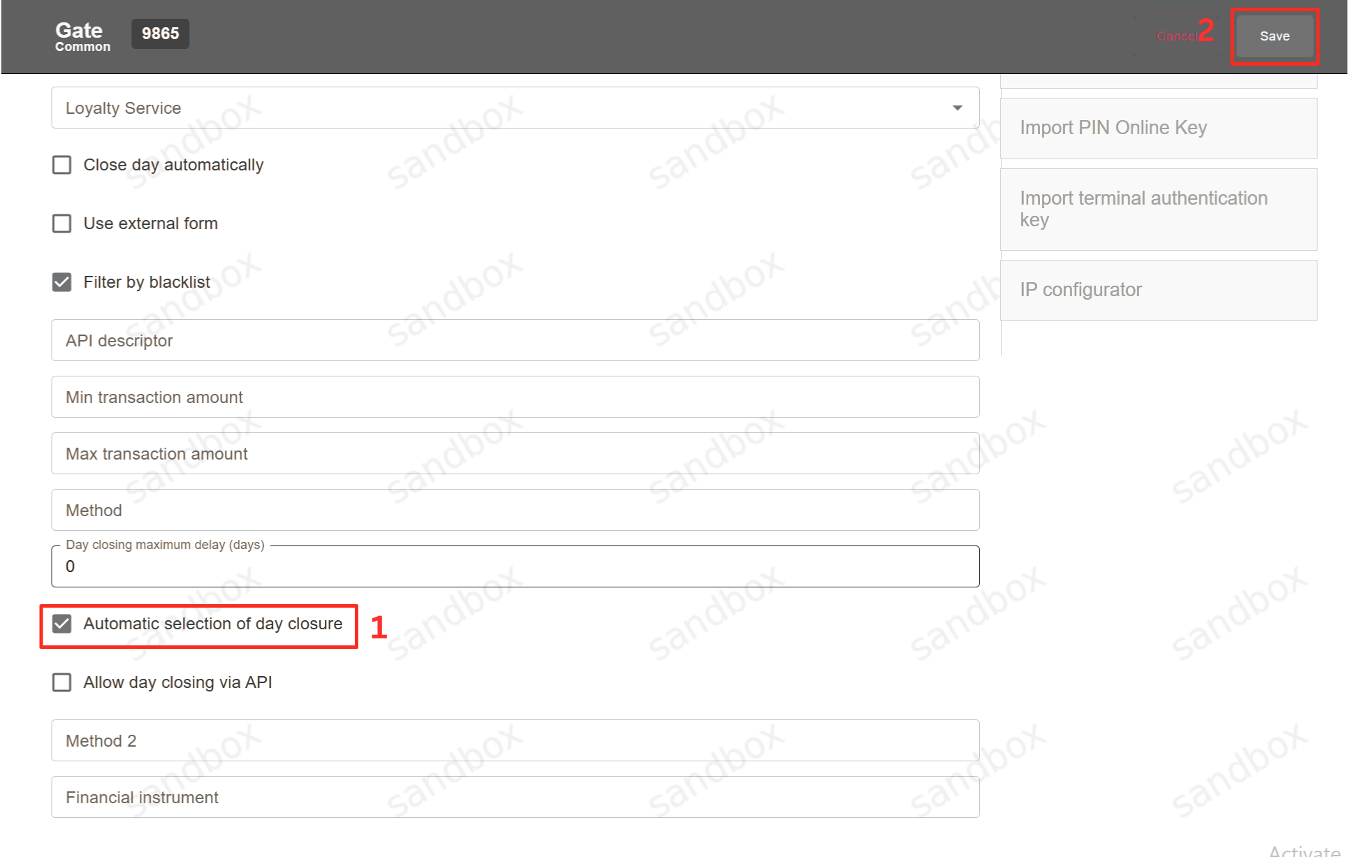 During the Close Day procedure the following gate will be blocked and transactions will not go through it.