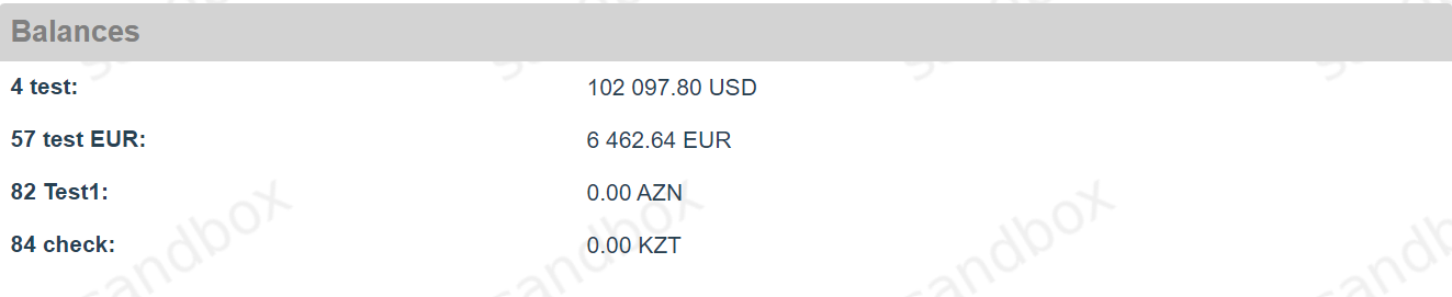 Each Connecting Party has a merchant user account created in Payment Gateway. If balance display is enabled, Merchant accounts can check current balances via Common tab on Endpoints. Balances also can be requested via API by Endpoint or by Merchant. Manager can get balance of any merchant by balance name via API request - balance by Manager To configure balances, see Account balances.