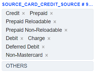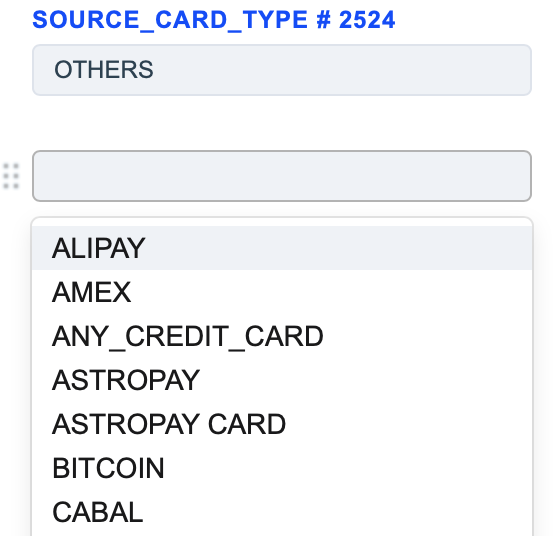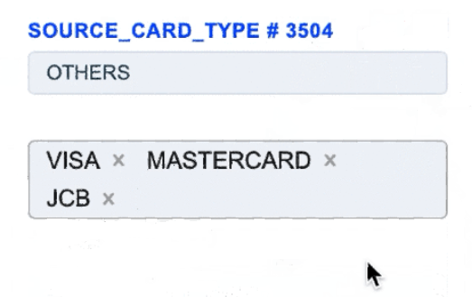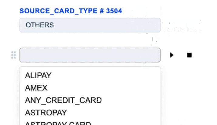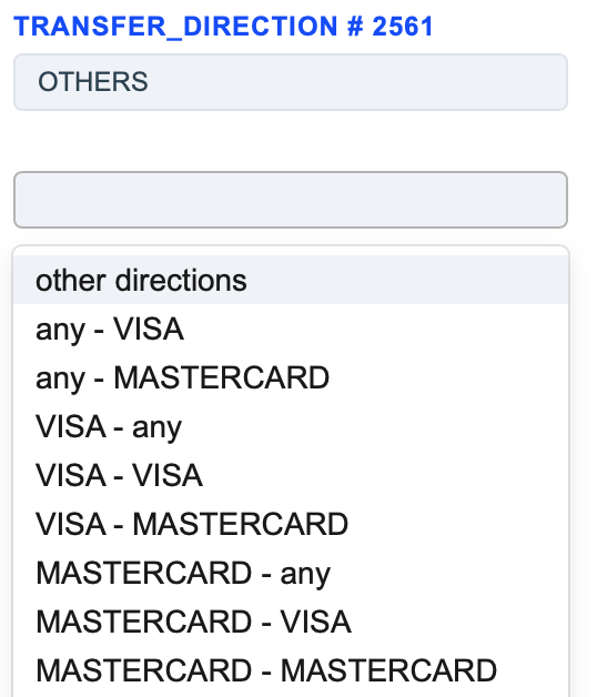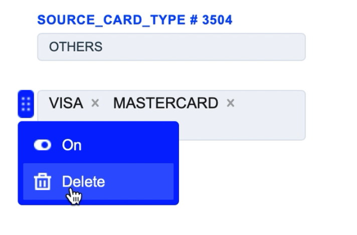 The Source Card Credit Source routing type allows to sort transactions by the sender’s card type. Select the needed card types of the sender and build a further route based on them.