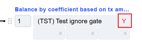 - Add balancing row - adds the row with active fields to specify the gate: