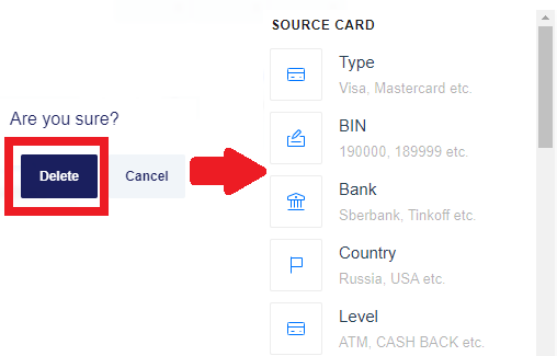 The Source Card BIN routing type is taken as an example: