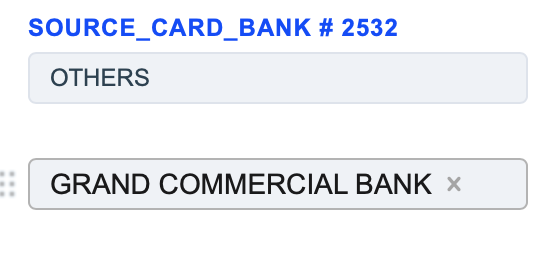 3) The Source Card Bank routing type allows to sort transactions by the sender’s Issuer Bank name. Select the needed names of sender’s Issuer Banks and build a further route based on them. There is an option to search Banks by their names. System can search for up to 500 entered Bank names listed one after another and separated by commas. They can be chosen by pressing the “By name -” button.