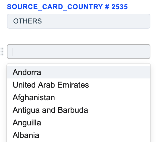 The Source Card Country routing type allows to sort transactions by the sender’s card Country. Select the needed countries of the sender and build a further route based on them.