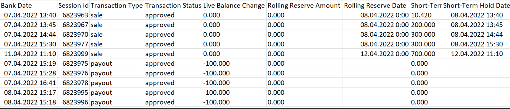 Short-Term Holds - amount of funds calculated based on the Date bumping function.