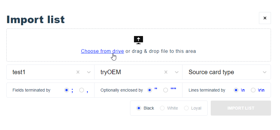 Loyalty list is designed for merchants who work with the predefined set of customers. Database with customers can be managed on merchant side with PCI DSS certification, or on Doc2.0 side. The system allows to manage the following several types of predefined clients lists such as names, emails, phones and etc.
