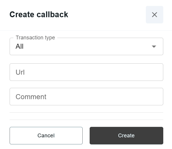 Обратный вызов настраивается на уровне Терминала с помощью утилиты Создания обратного вызова. Чтобы настроить новый обратный вызов, перейдите в нижнюю часть экрана сведений Терминала и нажмите кнопку “Добавить обратный вызов”.