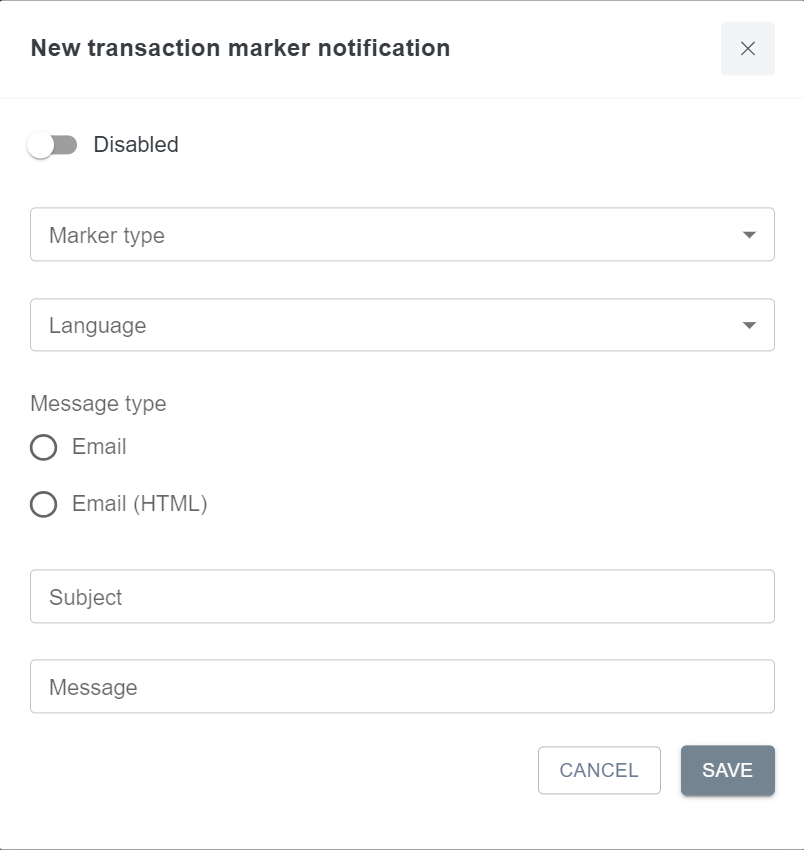 The Transaction marker notification tool is used to notify users about specific issues that might happen to transactions and usually require quick response. Each time the specified transaction marker is triggered, it will send email notification to user’s email address. For example, if notifications for chargebacks are enabled, user will get a new email notification for each chargeback applied to a processed transaction. Email content can be customized.